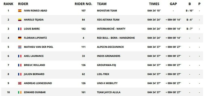 Победителем этапа стал Иван Ромео. Вторым финишировал Харольд Техада из команды XDS Astana Team. Третья позиция у Луи Барре из Intermarche-Wanty.