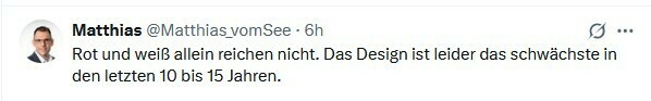 Matthias: Красный и белый цвета сами по себе недостаточны. Дизайн, к сожалению, является самым слабым за последние 10–15 лет.