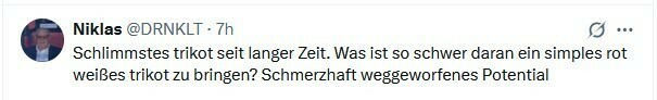 Niklas: Худшая форма за долгое время. Что такого сложного в том, чтобы выпустить простую красно-белую форму? Мучительно потерянный потенциал.