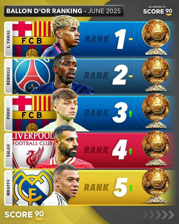 Score90 обнародовал рейтинг фаворитов на «Золотой мяч».