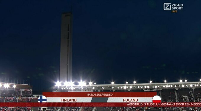 Матч Финляндии и Польши в отборе к ЧМ приостановлен. Что случилось?
