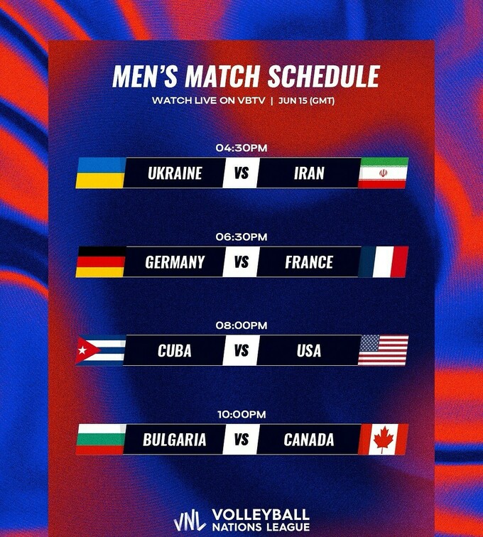 В течение трех соревновательных недель Украина проведет 12 матчей против сильнейших сборных мира. Соперниками украинцев станут: Куба, Иран, Франция, Турция, Болгария, Бразилия, США, Япония, Нидерланды, Сербия, Канада, Италия.