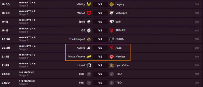 Первым соперником FaZe Clan с украинцем s1mple стали турки из Aurora Gaming. Украинской команде NAVI предстоит сыграть против российского состава Nemiga Gaming.