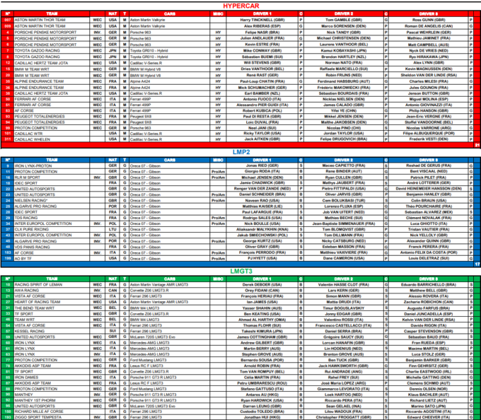 Также выбывают по 4 самых медленных экипажа из классов LMP2 и LMGT3.