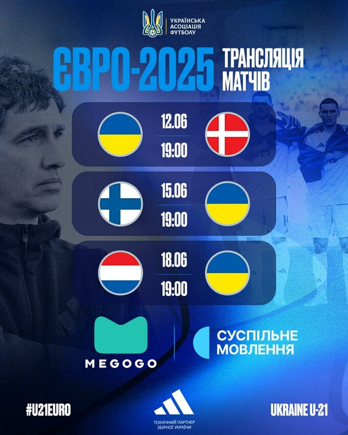 - 12.06. 19:00 Украина U-21 – Дания U-21