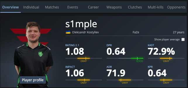 s1mple в цифрах. Статистика украинца по итогам второго этапа Мейджора