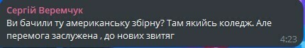 Сергій Веремчук: Вы видели ту американскую сборную? Там какой-то колледж. Но победа заслужена, к новым свершениям.