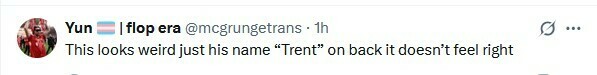 Yun: Это выглядит странно. Только его имя «Трент» на спине – кажется неправильным.