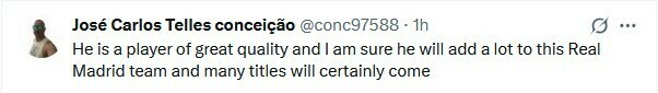 José Carlos Telles conceição: Он игрок высочайшего класса, и я уверен, что он многое добавит команде «Реал», и мы обязательно завоюем много титулов.