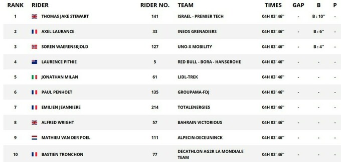 1. Джейк Стюарт (Великобритания, Israel – Premier Tech) – 4:03:46