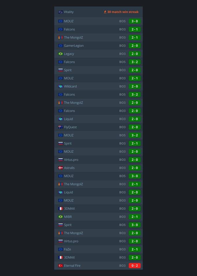Тот самый винстрик Vitality в 30 матчей: