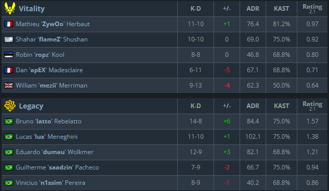 Статистика матча Vitality – Legacy: