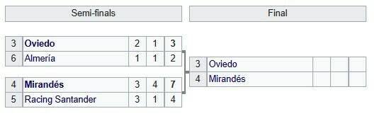 Мирандес вышел в финал плей-офф. В решающем матче эта команда встретится с Овьедо, который в своем полуфинале обыграл Альмерию. Финальные матчи пройдут 15 и 21 июня.
