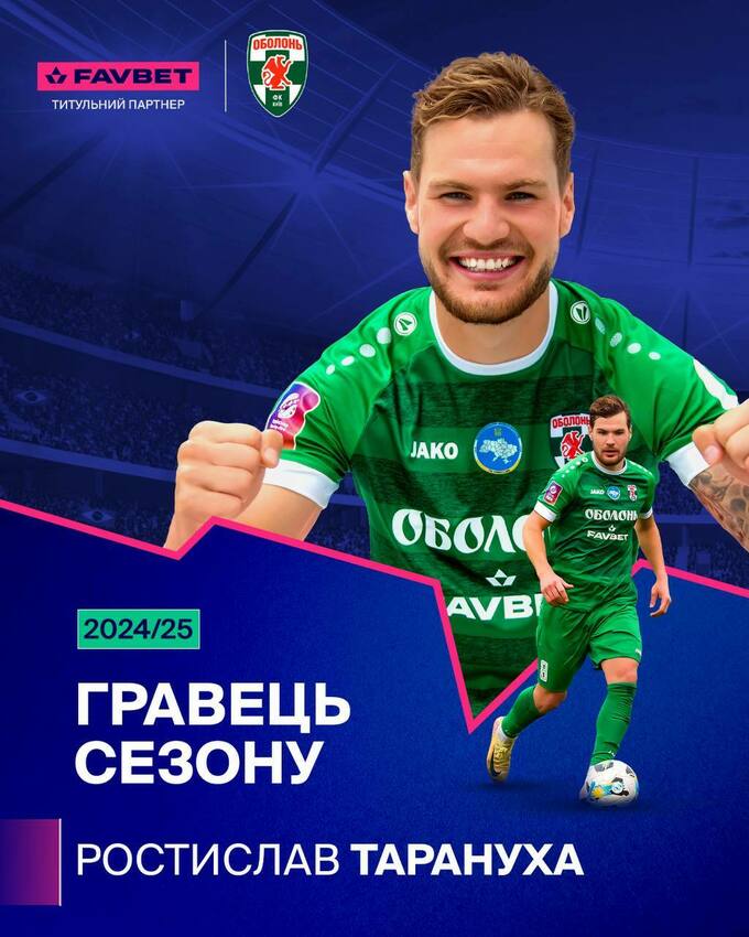Ростислав Тарануха – лучший игрок «Оболони» в сезоне 2024/25, по опросу болельщиков.