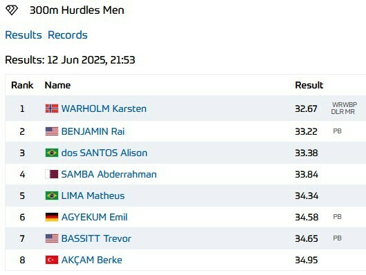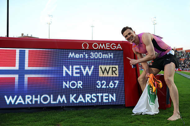 Норвежский спортсмен Карстен Вархольм установил новый мировой рекорд на дистанции 300 метров с барьерами, показав время 32,67 секунды на домашнем этапе Бриллиантовой лиги в Осло.