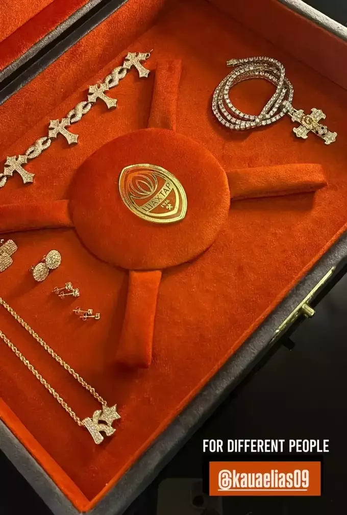 Футболист «Шахтёра» Кауан Элиас показал в Instagram ювелирные изделия, выполненные на его заказ.