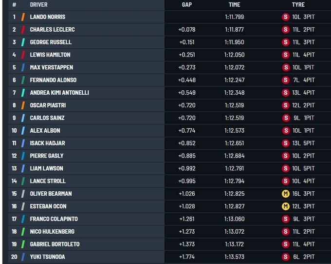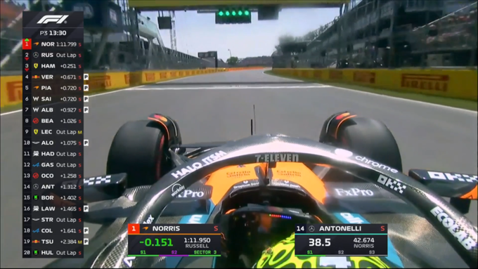 Лучшее время тренировки показал пилот Макларена Ландо Норрис, который опередил Шарля Леклера на Феррари и Джорджа Расселла на Мерседесе.