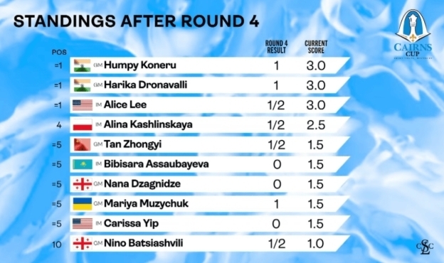 Первая победа Музычук. На Кубке Кэрнс состоялись матчи четвертого тура