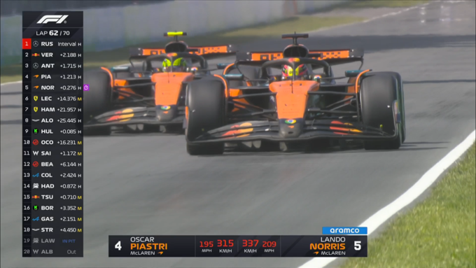 Норрис после выхода из последнего поворота врезался в напарника и сошел с дистанции. При этом Ландо сразу по радио признал свою вину.