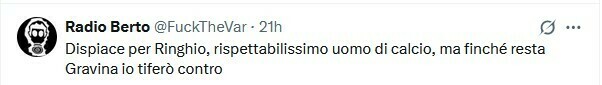 Radio Berto: Жаль Рино, очень уважаемого футболиста, но пока Гравина остается, я буду болеть против него.