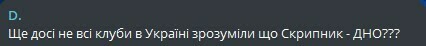 D: До сих пор не все клубы в Украине поняли что Скрипник – ДНО????