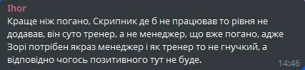 Ihor: Лучше чем плохо, Скрипник где бы не работал то уровня не добавлял, он сугубо тренер, а не менеджер, что уже плохо, ведь «Заре» нужен как раз менеджер и как тренер то не гибкий, а соответственно чего-то положительного здесь не будет.