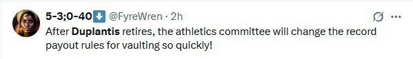5-3;0-40: После того, как Дюплантис уйдет на пенсию, легкоатлетический комитет очень быстро изменит правила выплат за рекордные прыжки!