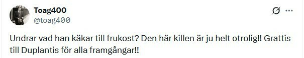 Toag400: Любопытно, что он ест на завтрак? Этот парень невероятный! Поздравляем Дюплантиса со всеми его успехами!