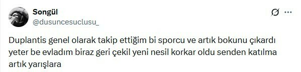 Songül: Дюплантис – спортсмен, за которым я обычно слежу, а теперь он сошел с ума. Хватит, парень, отойди немного назад, новое поколение тебя боится, не участвуй больше в соревнованиях.