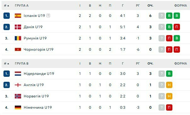 Вторую путевку в плей-офф от группы разыграют команды Дании и Румынии