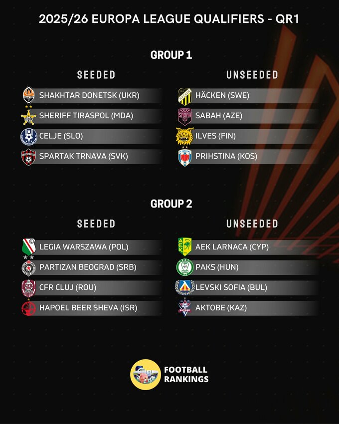 17 июня в 16:00 по киевскому времени в швейцарском Ньоне состоится жеребьевка первого раунда квалификации Лиги Европы 2025/26.