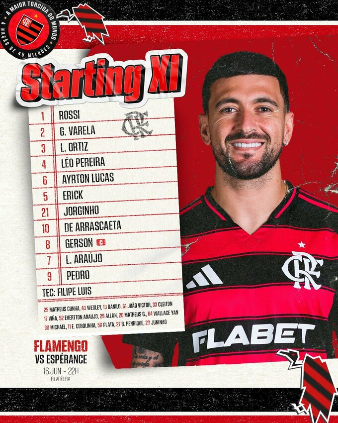 Стали известны стартовые составы на матч Фламенго и Эсперанса в КЧМ