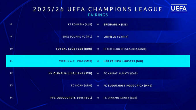 - Виртус (Сан-Марино) – Зриньски (Босния и Герцеговина)