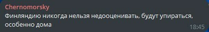 Chernomorsky: Финляндию никогда нельзя недооценивать, будут упираться, особенно дома.