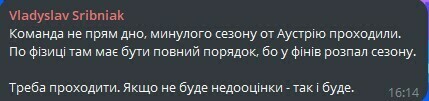 Vladyslav Sribniak: Команда не прям дно, в прошлом сезоне вот Аустрию проходили. По физике там должен быть полный порядок, потому что у финнов разгар сезона. Надо проходить. Если не будет недооценки – так и будет.