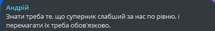 Андрій: Знать надо то, что соперник слабее нас по уровню, и побеждать их надо обязательно.