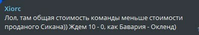 Xiorc: Лол, там общая стоимость команды меньше стоимости проданого Сикана)) Ждем 10-0, как Бавария – Окленд)