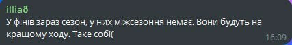 illia: У финнов сейчас сезон, у них межсезонья нет. Они будут на лучшем ходу. Такое себе(