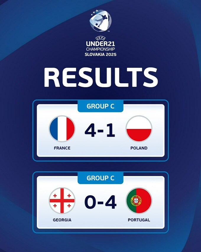 Грузия потерпела фиаско в матче с Португалией (0:4) и выбыла из турнира. За грузинскую сборную играли Иракли Азаров из Шахтера и Гиорги Майсурадзе из Полесья. В другом матче Франция переиграла Польшу (4:1).