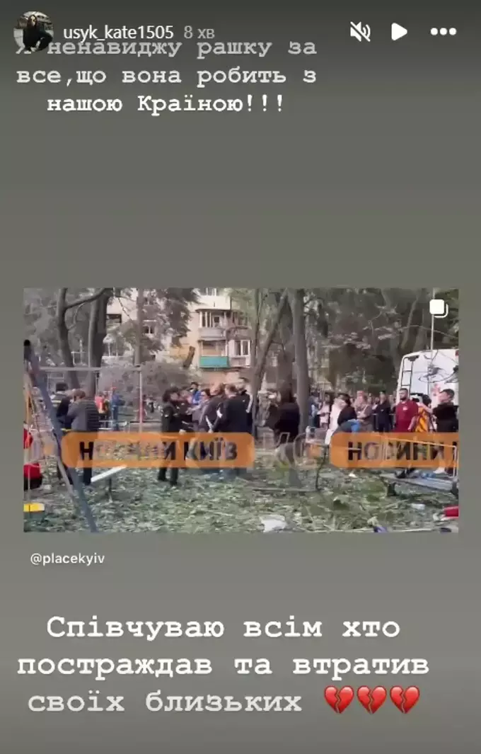 «Я ненавижу рашку за все, что она делает с нашей страной. Сочувствую всем, кто пострадал и потерял своих близких», – написала Екатерина в соцсетях.