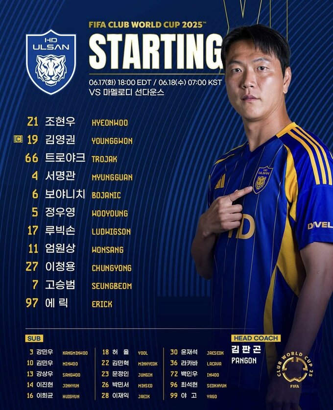 Ульсан ХД и Мамелоди Сандаунз объявили стартовые составы на игру КЧМ