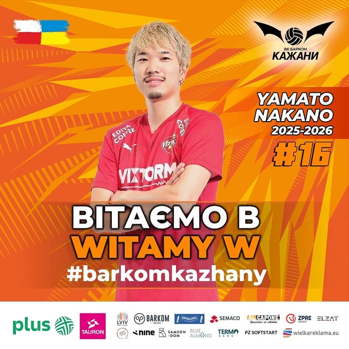 Японский волейболист Ямато Накано присоединился к львовскому клубу «Барком-Кажаны», который выступает в польской Плюс-Лиге. О подписании контракта сообщила официальная страница команды в социальных сетях.