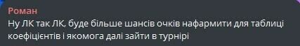 Роман: Ну ЛК так ЛК, будет больше шансов очков нафармить для таблицы коэффициентов и как можно дальше зайти в турнире.