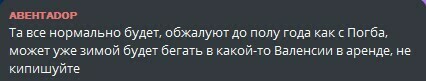 ᴀʙᴇʜᴛᴀᴅᴏᴘ: Та все нормально будет, обжалуют до полу года как с Погба, может уже зимой будет бегать в какой-то Валенсии в аренде, не кипишуйте.