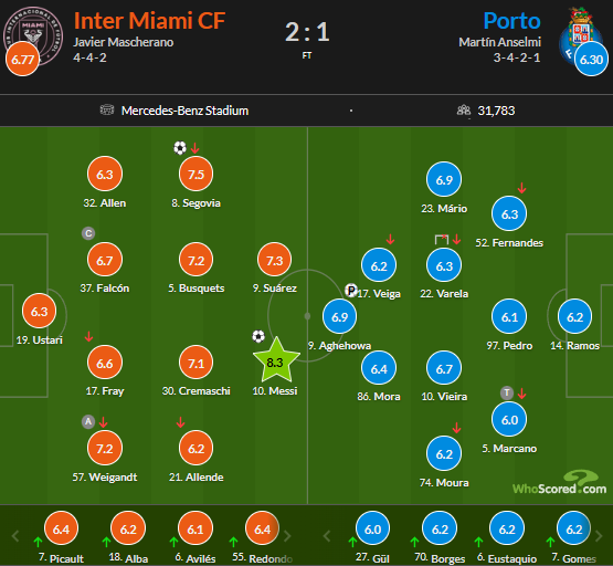 Оценки WhoScored за матч Интер Майами – Порту (2:1)