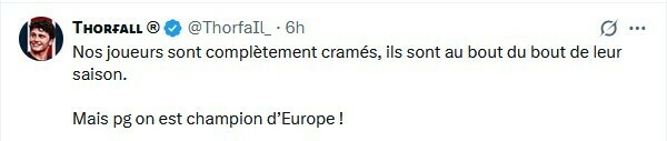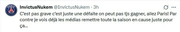 InvictusNukem: Неважно, это просто поражение, мы не можем всегда побеждать, давай, Париж! С другой стороны, я уже вижу, как СМИ ставят под сомнение весь сезон только из-за этого...