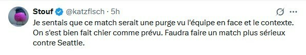 Stouf: Я чувствовал, что эта игра будет занудной, учитывая команду, с которой мы сталкивались, и контекст. Мы действительно облажались, как и ожидалось. Нам придется сыграть более серьезную игру против Сиэтла.