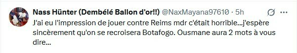 Nass Hünter (Dembélé Ballon d'or!!): Я чувствовал себя так, будто играл против Реймса... это было ужасно... Я искренне надеюсь, что мы снова встретимся с Ботафого. Усман хочет сказать вам 2 слова...