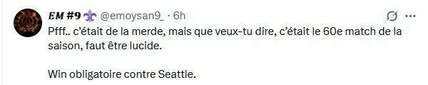 𝐸𝑀 #𝟗: Пффф... это было дерьмово, но что поделаешь, это была 60-я игра в сезоне, надо быть реалистами. Должны выиграть у «Сиэтла».