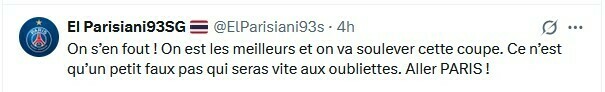 El Parisiani93SG: Кого это волнует! Мы самые лучшие, и мы поднимем этот Кубок. Это лишь маленькая оплошность, которую скоро забудут. Вперед, Париж!